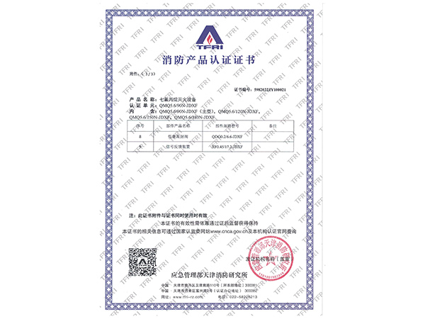 | 滅火劑名稱 | 七氟丙烷(HFC-227ea) |
